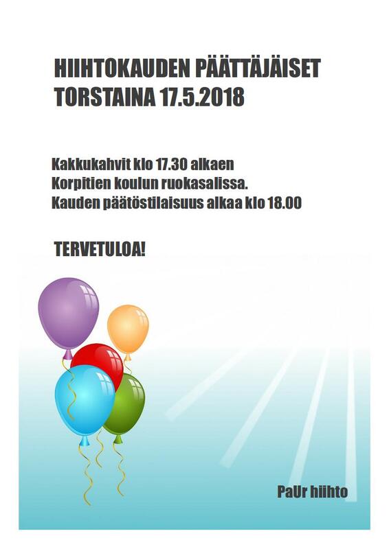 Hiihtokauden 2018 palkitsemis- ja päätöstilaisuus vietetään torstaina 17.5 Korpitien koulun ruokalassa. Aloittelemme kakkukahveilla klo 17.30, jonka jälkeen vietämme päätöstilaisuuden klo 18.00 alkaen. Viime kaudella lunta oli riittävästi, mutta pakkasesta johtuen osa kisoista jouduttiin perumaan. Hiihdot onnistuttiin kuitenkin järjestämään viisi kertaa. Torstaina palkitsemme vähintään kolmeen osakilpailuun osallistuneet hiihtäjät. Tervetuloa |