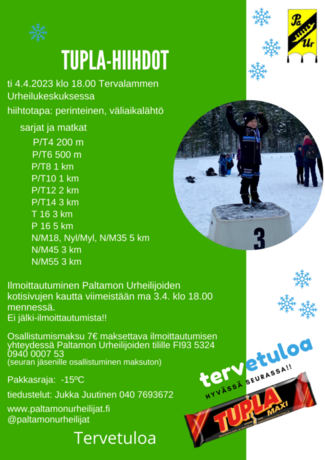 Osallistumismaksu on 7 €, joka maksetaan Paltamon Urheilijoiden tilille FI93 5324 0940 0007 53 ilmoittatumisen yhteydessä (viestikenttään Sarjahiihtojen päivämäärä ja osallistujan nimi/nimet)